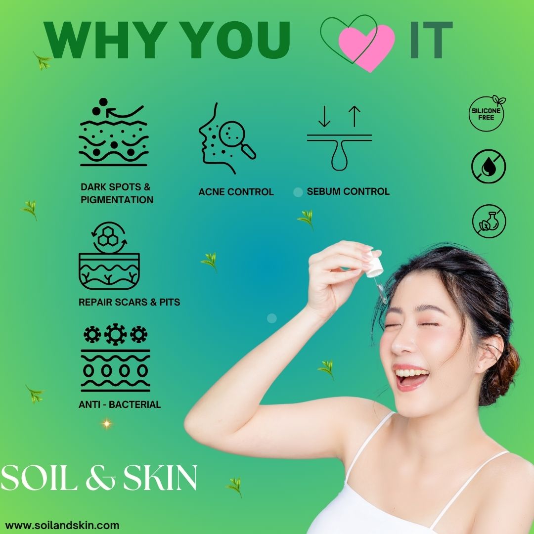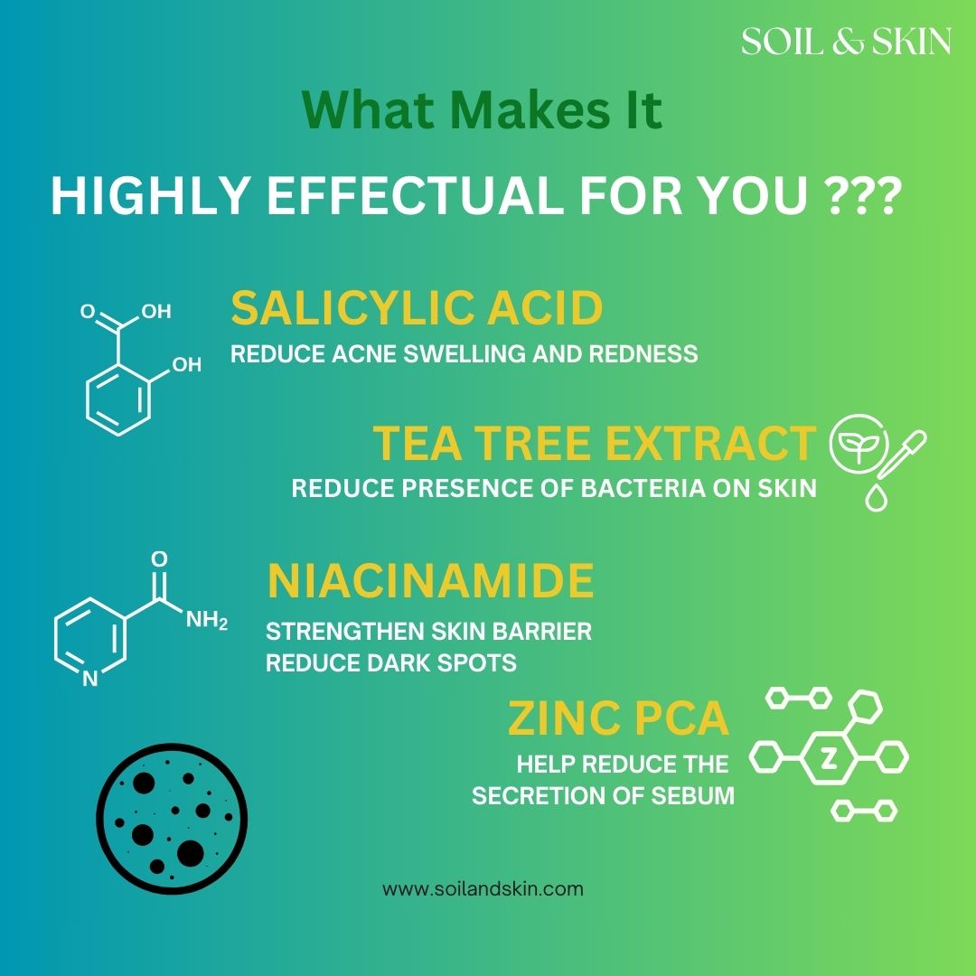 These actives work together to control acne, prevent further breakouts, blackheads and whiteheads, acts as anti-inflammatory and improve the skin’s texture. This serum will give you clearer, healthier skin without harsh ingredients.